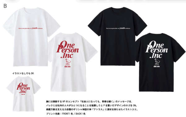 ワンパーソン株式会社:グッズ(Tシャツ、帽子)